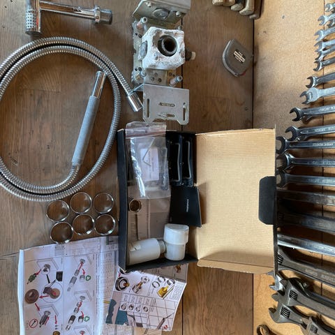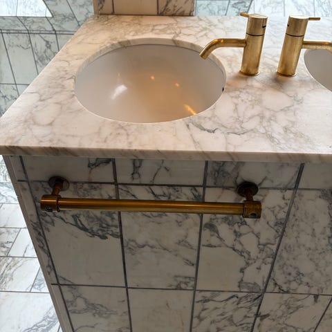 Vola messing Væghængt badekarsarmatur med bruser, messingfarvet