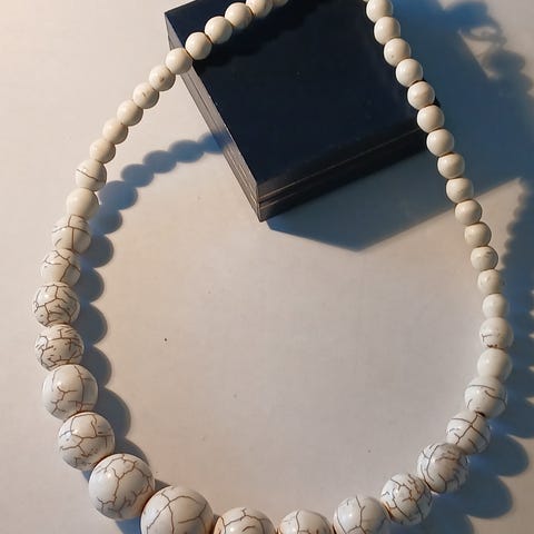 Perlerne er trukket på snor og samlet med en metal-lås. Velegnet som klassisk smykke til hverdag eller fest.