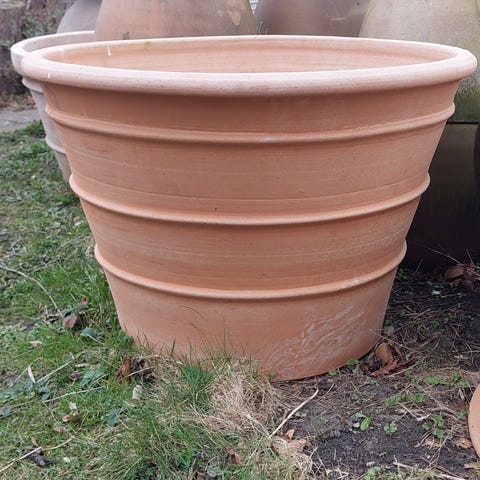 Så drop den trælse sorte plastic spand og invester i en solid terracotta krukke.