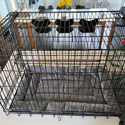 Pluto Premium hundebur i sort metal. Buret er sammenklappeligt og har gitterkonstruktion med plastbakke i bunden, som kan tages ud for nem rengøring. Egnet til hunde, f.eks. til brug i hjemmet eller i bilen, hvor hunden skal have et afgrænset område. Buret har låge i siden og i enden og er udført i robust metaltråd med god ventilation hele vejen rundt.