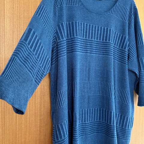 Flotteste trøje med sorte blonder i 100% merino uld. Stærk blå farve. Aldrig brugt. Størrelse S - passer størrelse 38. Måler ca 96 cm tværs over og 60 fra skulderen og ned.