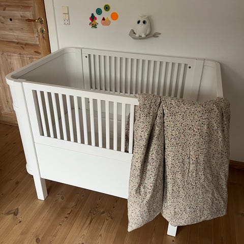Vi sælger den smukke Sebra-seng (også kendt som Juno/Lille Per-sengen) i hvid. Det er dansk designhistorie og sengen er super god til både spædbørn, tumlinger, og til de større børn. Vi har selv udvidet til den lange model da vores piger var cirka 3 år.