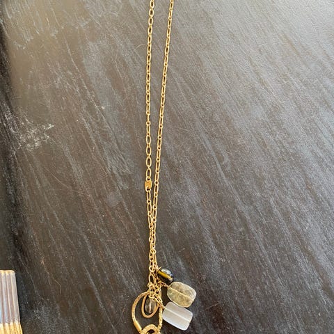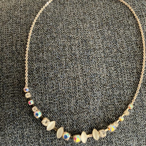 Dyrberg/Kern halskæde til kvinde i forgyldt metal med krystaller. Halskæden består af fine kædeled og små krystalperler i lyse nuancer kombineret med forgyldte detaljer og Dyrberg/Kern-logo ved låsen. Velegnet som smykke til hverdag og fest. Kan bæres alene eller sammen med andre halskæder for et lag-på-lag-look.