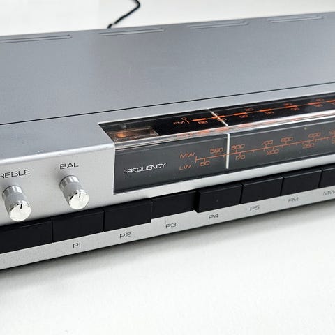 Fint anlæg fra dengang. Det spiller rigtig godt, især er jeg imponeret over den kraftfulde forstærker. Har alle knapper og dials. Der er lys i alt der skal være lys i.