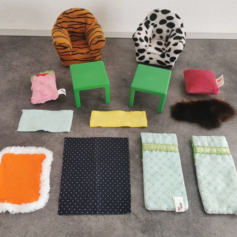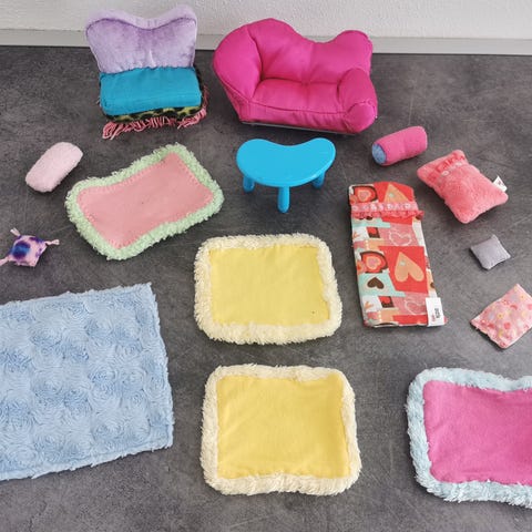 Vægt Barbie / Bratz møbler med tæpper & puder: 348 gram. Kan sendes, hvis køber betaler fragten.