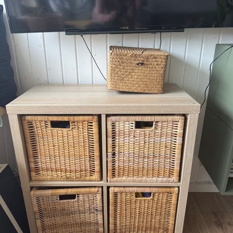 Man kan sætte kasser eller kurve i, som passer i størrelsen. Og man kan sætte hjul eller ben på, hvis man ønsker.