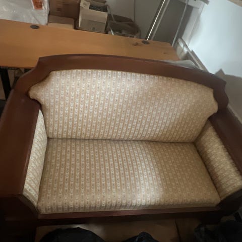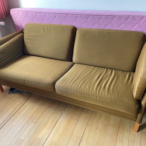 Farstrup Plus sofa, 2-personers model, polstret i lys beige stof med knapdetaljer i både sæde og ryg. Sofaen har armlæn og ben i træ, hvilket giver et klassisk udtryk. Egnet som mindre sofa til stue, entré eller opholdsrum, hvor der er behov for en kompakt siddeplads til to personer.Jeg sælger den for næsten ingenting, 5 gange billigere end den kostede i butikken.