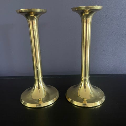 4 ens messinglysestager , GV Harnisch eftf, 4 super flotte og gamle lysestager med stempel i bunden. Flotte også til jul eller som adventsstager. 2 har lidt pletter - ellers i fin stand. Højde 20. Samlet pris 600kr.