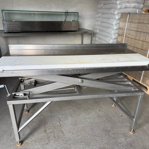 Rustfrit hæve-sænke-bord til køkken. God kvalitet. Serviceret af Bent Brandt.