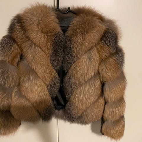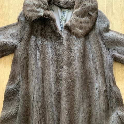 Jakken er fremstillet i brun pels og har et klassisk, lige snit med lange ærmer. Designet er enkelt uden synlige knapper eller lynlås på billederne og går cirka til knæet, afhængigt af højde. Velegnet som overtøj i koldere vejr. Farven er brun, og materialet fremstår som glat og tæt pels. Passer til damegarderobe i størrelse 38.