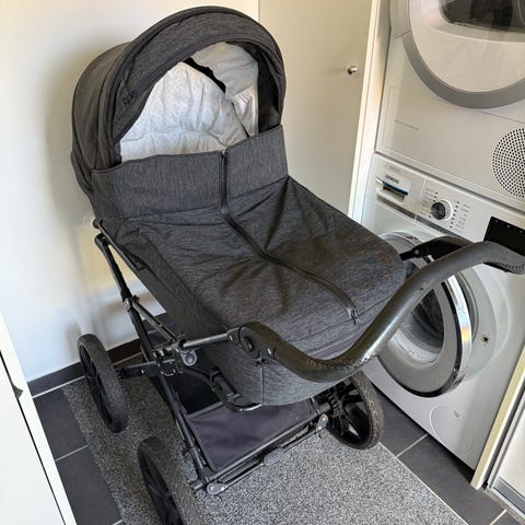 Vi sælger vores Odder North barnevogn i farven sort Melange, idet vi ikke bruger den. Barnevognen har få almindelige brugsspor, men fremstår virkelig flot, da den kun har været brugt lidt. Vi har foretrukket en anden og noget ældre Odder barnevogn, som egentlig var købt som vogn nummer 2.. Der medfølger en helt ubrugt lift med åndbar madras samt en madras magen til, bare større, der ligger i barnevognen. Vognen har fået monteret helt nye punkterfrie dæk, og hvis man ønsker det, kan man få alm. luftdæk med, som vi selv har brugt. Der er indbygget lys/reflekser i vognen samt solafskærmning. Der medfølger også et Odder ryglæn.
