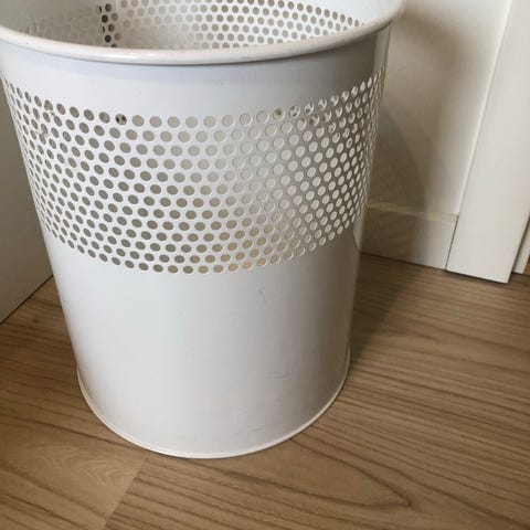 Papirkurv i metal i sort farve. Kurven har rund form med perforerede sider og solid bund. Egnet til brug på kontor, værelse eller andre rum, hvor der er behov for opsamling af papir- og tørt affald. Kan stilles direkte på gulvet og er let at flytte rundt efter behov. Højde ca 30 cm. Diameter ca 23 cm.