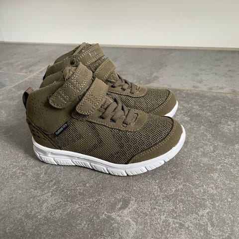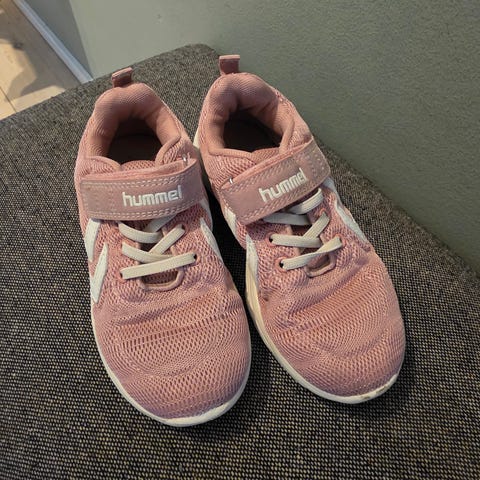 Et par sorte Hummel sneakers med hvide snørebånd og logo detaljer. Skoene har tegn på brug, men ingen store skader eller slidområder.