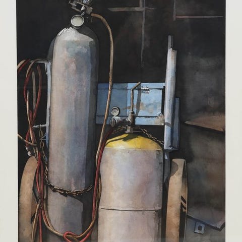 Originalt signeret akvarel stilleben Revolving Canista cabinet, Sydney af Max Kreijn (1947-2013), 1991, 150 x 100 cm, Nederland, originaludgave, solgt af Galerie. Klik på den blå "gå til varen" knap, for at købe eller byde på denne vare. Den samlede pris vil blive vist inden du afgiver dit bud.