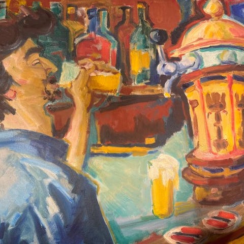 Originalt oliemaleri af Roland van den Berg, søn af Freek van den Berg, med titel In het café Veessen Amsterdam 546, 60 x 85 cm, portræt, håndsigneret, fra 2020 eller senere, i rimelig stand. Klik på den blå "gå til varen" knap, for at købe eller byde på denne vare. Den samlede pris vil blive vist inden du afgiver dit bud.