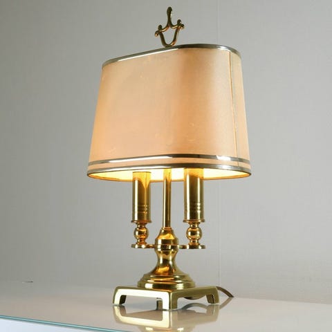 Bronzet bouillotte bordlampe, Grand Model attribueret Maison Bagués, antik stil med Napoléon III-understil, ca. 1970–1980, højde 80 cm, bredde 50 cm, dybde 50 cm, vægt 10 kg, bronzefarve, oprindelse Frankrig (Régional parisienne), i fremragende stand med minimale slidmærker og i funktionsdygtig stand. Klik på den blå "gå til varen" knap, for at købe eller byde på denne vare. Den samlede pris vil blive vist inden du afgiver dit bud.