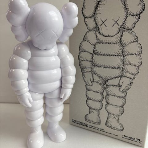 KAWS Companion (Robert Lazzarini version), skulptur i plastik og vinyl i popkunststil, 22 cm høj, 9 cm bred, 7,5 cm dyb, 159 g, fremstillet i Kina for OriginalFake i 2010 i en begrænset oplag på 500 eksemplarer. Klik på den blå "gå til varen" knap, for at købe eller byde på denne vare. Den samlede pris vil blive vist inden du afgiver dit bud.