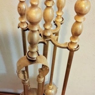 Femstykke sæt antik stil servanter til pejs og trægrill i bronze og messing belagt guld, fremstillet i Frankrig i 1950’erne, model Forme clé boulles allongé bronze, farve guld, dimensioner 66 cm i højde, 66 cm i diameter, 16 cm dybde, vægt 3 kg. Klik på den blå "gå til varen" knap, for at købe eller byde på denne vare. Den samlede pris vil blive vist inden du afgiver dit bud.