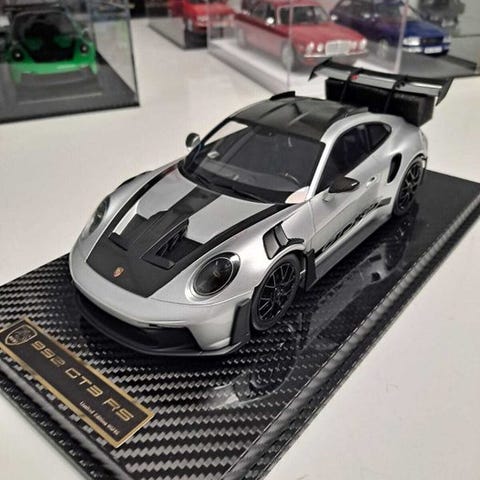 Radscale 1/18 skala Porsche 911 - 992 GT3 RS i RS blå, ny, i originalt forseglet emballage, inklusive luksus underlag og vitrineskab; begrænset udgave på 46 stk. Klik på den blå "gå til varen" knap, for at købe eller byde på denne vare. Den samlede pris vil blive vist inden du afgiver dit bud.