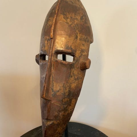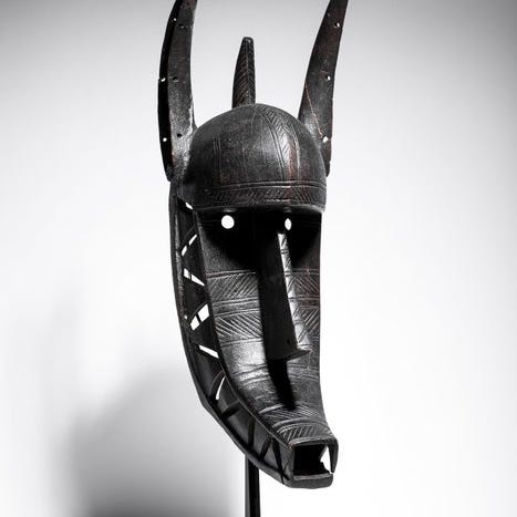 Maske fra Marka-folket i Mali, fra slutningen af det 20. århundrede, af træ og messing, 58 cm høj og 18 cm bred, i fremragende stand, solgt uden stand. Klik på den blå "gå til varen" knap, for at købe eller byde på denne vare. Den samlede pris vil blive vist inden du afgiver dit bud.