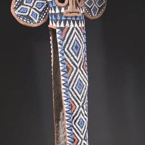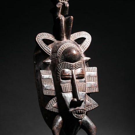 Marka-folket er en etnisk gruppe, der står meget tæt på Bambara, hvis kunst især kendes ved deres masker dækket af messingplader, som denne.