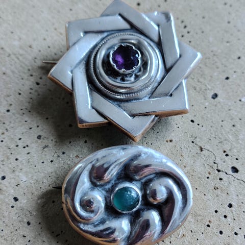 Flot sæt med 9 vintage broscher fra 1960'erne/1980'erne - Metal i gylden og sølv tone meget skinnende - Broscher