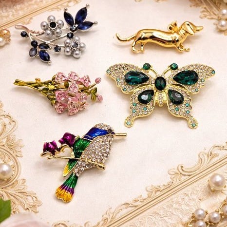 Flot sæt af franske vintage-broscher fra 1960'erne/1980'erne, broscher med bittesmå krystaller meget klare i dagslys, hvilket gør dem meget iøjnefaldende og får alle blikke til at hvile på dig.