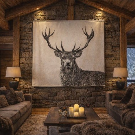 Stor dekorativ vægstapet i verdure-stil med hjorte, fremstillet i Frankrig af en bomuld- og syntetisk fibre-blanding, 266 × 150 cm, århundredes midt- til slutning af det 20. århundrede, mekanisk jacquardvævning, i fremragende stand. Klik på den blå "gå til varen" knap, for at købe eller byde på denne vare. Den samlede pris vil blive vist inden du afgiver dit bud.