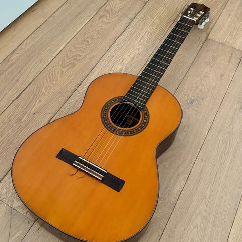 Gennemgå venligst billederne og videoerne omhyggeligt; de er den bedste måde at forstå guitarens tilstand og lyd på. Guitaren er omkring 60 år gammel, så tilpas dine forventninger derefter. Den har ridser, skrammer og ufuldkommenheder. Den vil føles anderledes end et nyt instrument.