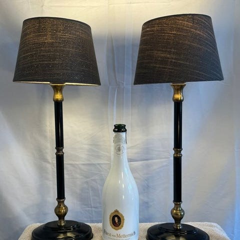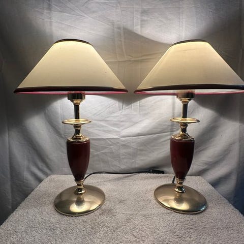 Smukt sæt af to matchende bordlamper med en varm, klassisk udstråling.
