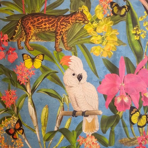 Dette stof med farvede luftballoner er også en hyldest til Fornasettis karakteristiske stil.