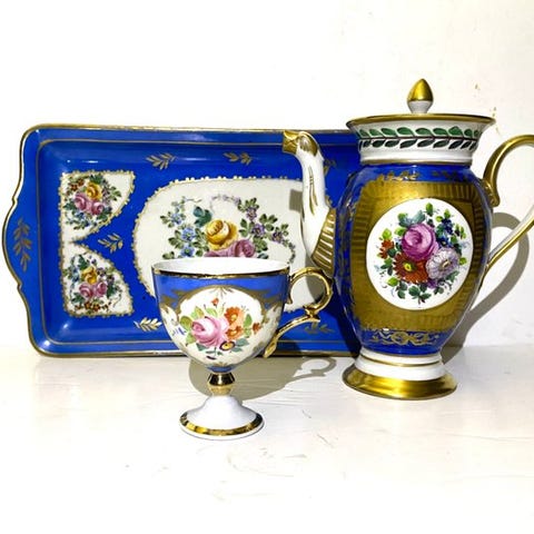 Bavaria - Kaffe og te service (26) - Antico e regale set da pasticceria in bl...