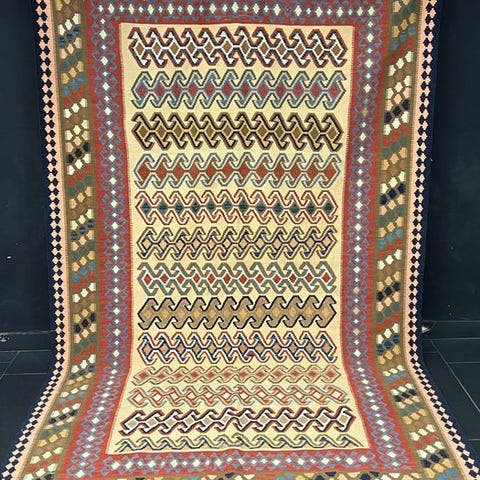 Denne Jajim-tæppe fra Aserbajdsjan, der afspejler den unikke karakter i Kaukasusvævetraditionen, er et fremragende stykke med både etnografisk værdi og samlerpotentiale. Takket være den håndvævede teknik kan håndværkerens arbejdskraft og det regionale motivsprog mærkes i hver tomme. Dets farvegradueringer og symbolske geometriske mønstre adskiller det fra almindelige dekorative tæpper og giver det en autentisk identitet og kulturel dybde.