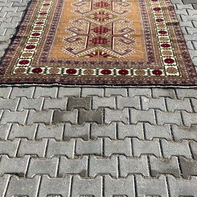 Det er et tæppe, der er vævet med traditionelle motiver fra Kars-regionen.