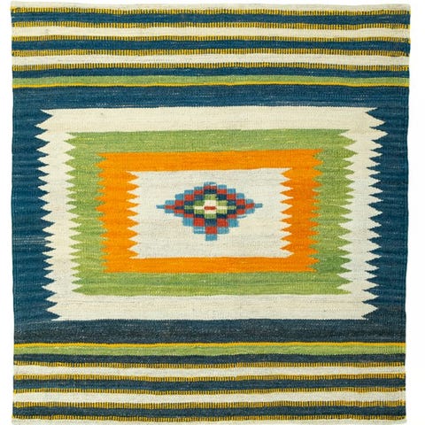 På grund af den fladvævede struktur er kilimet let, robust og alsidigt at bruge, både som gulvbelægning og som vægdekoration.