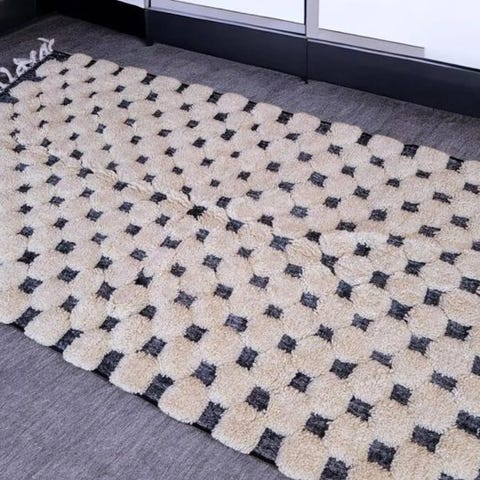 Alle vores tæpper bliver lokalt økologisk håndvasket efter tradition. Du kan lægge dette tæppe ud med det samme.