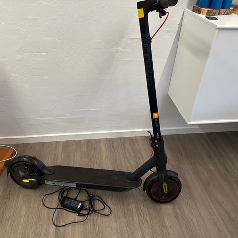 Xiaomi el-løbehjul i sort. Modellen har stålrørssøjle med Xiaomi-logo, brede dæk med refleks på forgaflen og skridsikkert ståbræt. Egnet til transport på hårde underlag som asfalt og fliser. Løbehjulet har støtteben og kompakt design, som gør det velegnet til bykørsel og korte pendlerstrækninger.