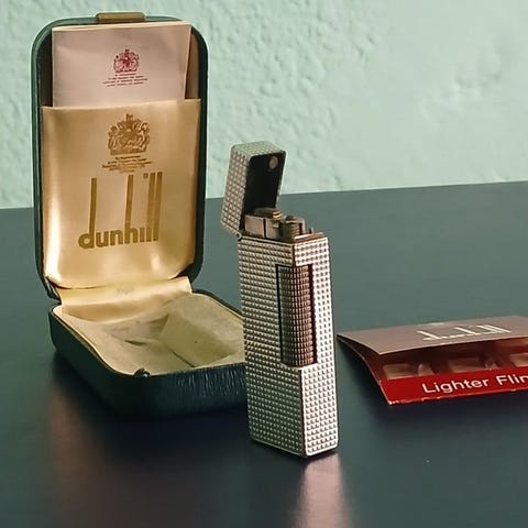 Rar Alfred Dunhill lighter belagt med sølv og gasdrevet. I fremragende stand som på billedet, mærket og nummereret. Lighteren er ikke testet og gasudtømt, ikke poleret for ikke at skade patinaen.