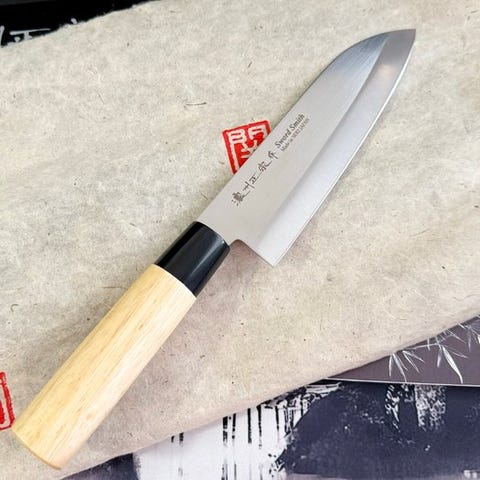 Santoku-kniven er den japanske version af chefkniven. Ordet 'santoku' betyder 'tre dyder', hvilket refererer til knivens tre skærfunktioner: fine snit, skiver og tern. At betegne alsidigheden som en allrounder i køkkenet.