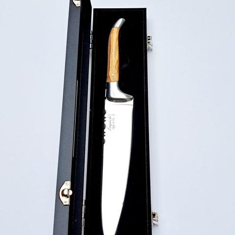Laguiole - Santoku-kniv - med skærebræt - Oliventræ