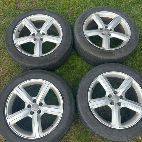 Sælger et sæt originale Audi 19” alufælge, som har siddet på en Audi Q5 fra 2021. Fælgene fulgte med bilen ved køb og sælges kun, fordi jeg har opgraderet til større fælge.