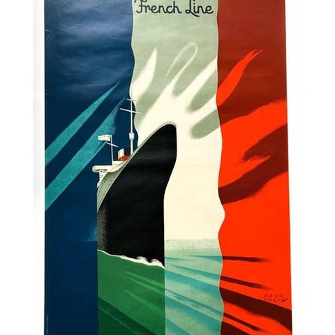 Affischen hentet fra Air Francês historiske arv: Air Orient af Paul Colin fra 1932, genudgivelse i 1992 af ADAGP Paris.