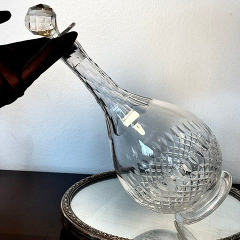 Karafflen har den ikoniske Sévigné-gravering. Et delikat og sofistikeret mønster af fint udskårne motiver, der smukt fanger og reflekterer lyset. Dens harmoniske proportioner og raffinerede silhuet gør den både funktionel og et ægte samlerobjekt.
