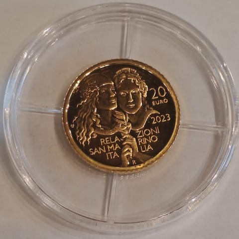 San Marino 2016 Giubileo della Misericordia proof guldmønt, 3 g 0,900 fint guld, diameter 13,85 mm, nominelt 10 euro, ikke cirkulerende, i kapsel. Klik på den blå "gå til varen" knap, for at købe eller byde på denne vare. Den samlede pris vil blive vist inden du afgiver dit bud.