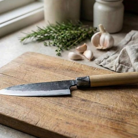 Tilbudt her er et overbevisende sæt af tre vintage traditionelle japanske Deba-knive (出刃包丁), hver med indgraverede signaturer. Disse tykke, ensides-slipede blade er specialfremstillede til fiske-slagtning, filetering og præcis nedbrydning – en væsentlig form i professionelle japanske køkkener.