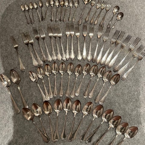 Flot og klassisk Atlas bestik i pletsølv sælges samlet.