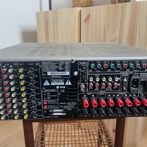 Denon AVR-4306 surround receiver i sølvfarvet kabinet. Modellen er en flerkanals hjemmebio-receiver med omfattende tilslutningsmuligheder på bagsiden, herunder flere analoge lyd- og videoindgange, digitale tilslutninger og højtalerterminaler til flere zoner/kanaler.