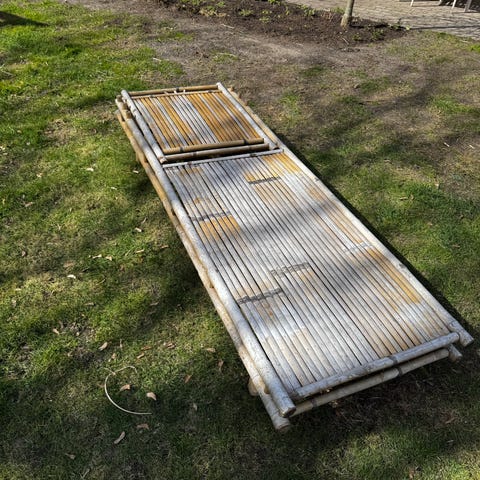 2 stk liggestol i bambus med beige stofsæde og aftagelig nakkepude. Stolen har sammenklappeligt stel i lyst træ og lærredsagtigt sæde i lys beige farve. Egnet til brug på terrasse, altan, have eller strand, hvor der ønskes en enkel og funktionel sidde- og liggemulighed udendørs.