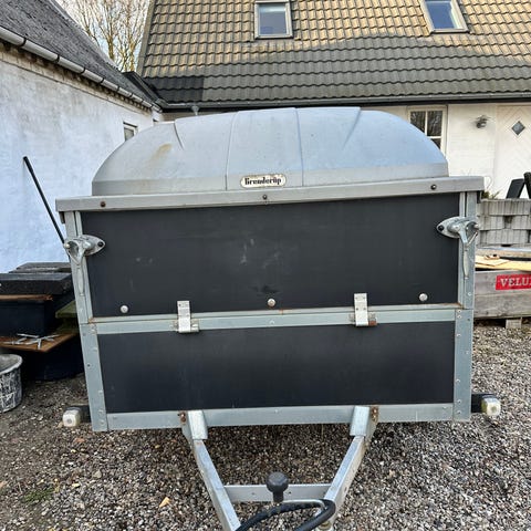 Traigo 500, TP50 type 750II, 22-02-2023, vægt 180 kg total 500 kg, bredde 190 cm, længde 210 cm, højde 190 cm påmonteret med div kasser og 2 cykelholdere, reservehjul, ekstra slinger lygter, nu nedsat i prisen