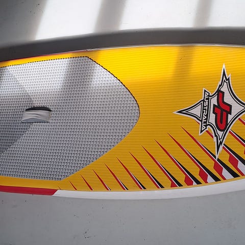 Lækkert sup som vores børn har været glade for. Passer bedst til personer som vejer under 60 kg. Har ligget oppustet ved Esrum sø lige fra vi købte det, og kun været i ferskvand. Opbevaret i lukket carport. Lige indtil nu hvor vi ikke har den mulighed længere. Uden pumpe og pagaj.
